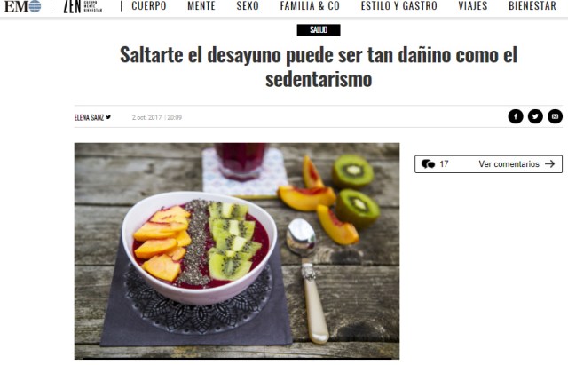 Y para finalizar, creo que se merece una atención especial el artículo publicado en El Mundo, el que luce el titular más sensacionalista y que he citado en primer lugar al principio del post: Saltarte el desayuno puede ser tan dañino como fumar.