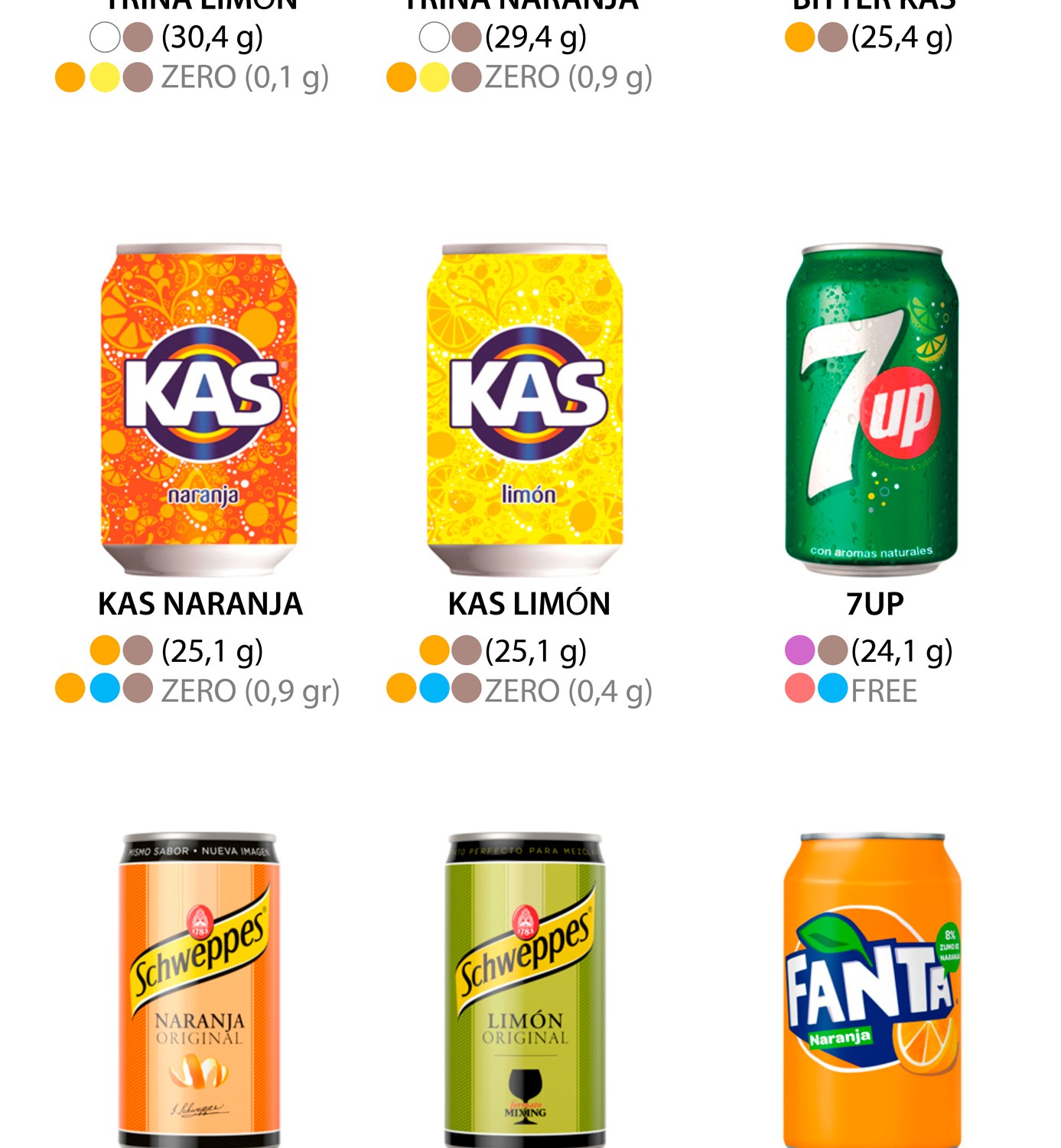 -Aspartamo (E-951). Nunca va solo en estos refrescos, sino en combinación con el acesulfamo K (E-950). Como él, es 200 veces más dulce que el azúcar. Habitual en todas las versiones light o zero, solo Trina y KAS prescinden de este aditivo sintético.